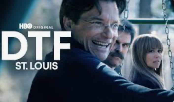 The HBO series DTF St. Louis also features two dead bedroom suburban marriages, this time in current era St. Louis. The letters DTF stand for “down to fuck,” and DTF St. Louis is a hookup website that acts as a plot device.