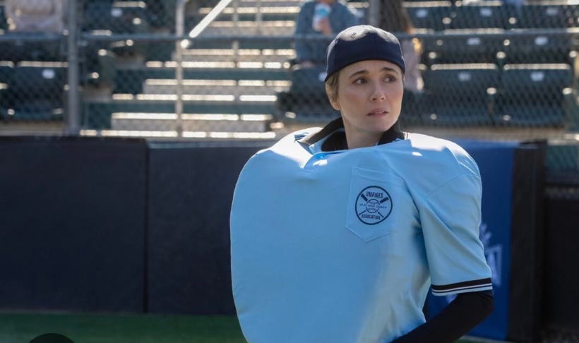 In the novel Lake Effect, the reasons for the two dead bedrooms are tragic. In DTF St. Louis, the David Hopper character is dealing with multiple erectile dysfunction issues. As well, he’s stymied by a persistent image of his otherwise sexy (in a sluttish way) wife Linda Cardellini in her enormously bulky baseball umpire gear. She “umps” as a side-gig.