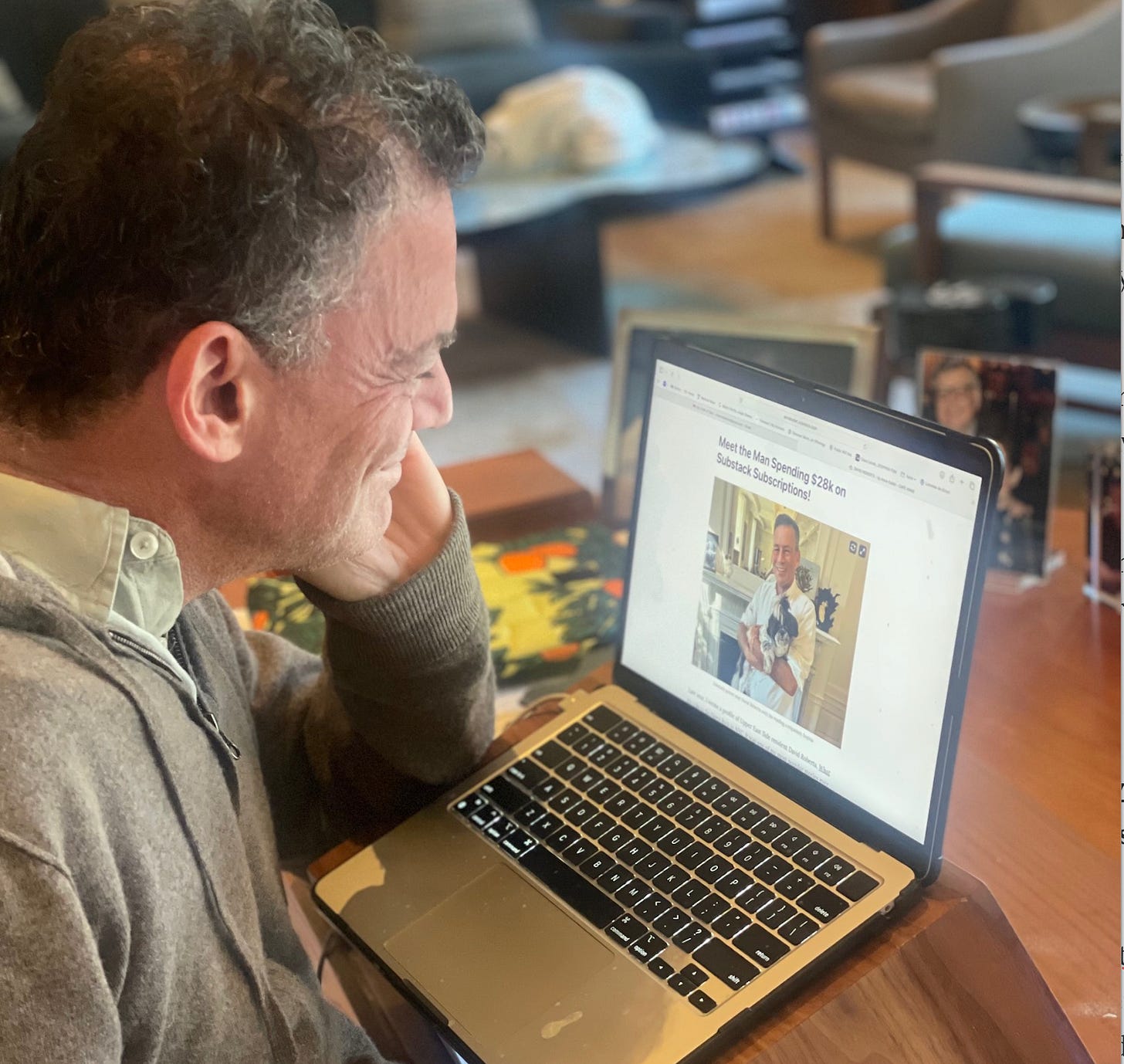 When I found out, I did a little Anne math. That’s not just a lot of money, that’s a lot of reading! We’re talking at least 10 million words a year. What was up with my favorite Fifth Avenue multidecamillionaire? Earlier this week, David and I had a little Zoom chat about his Substack habit.
